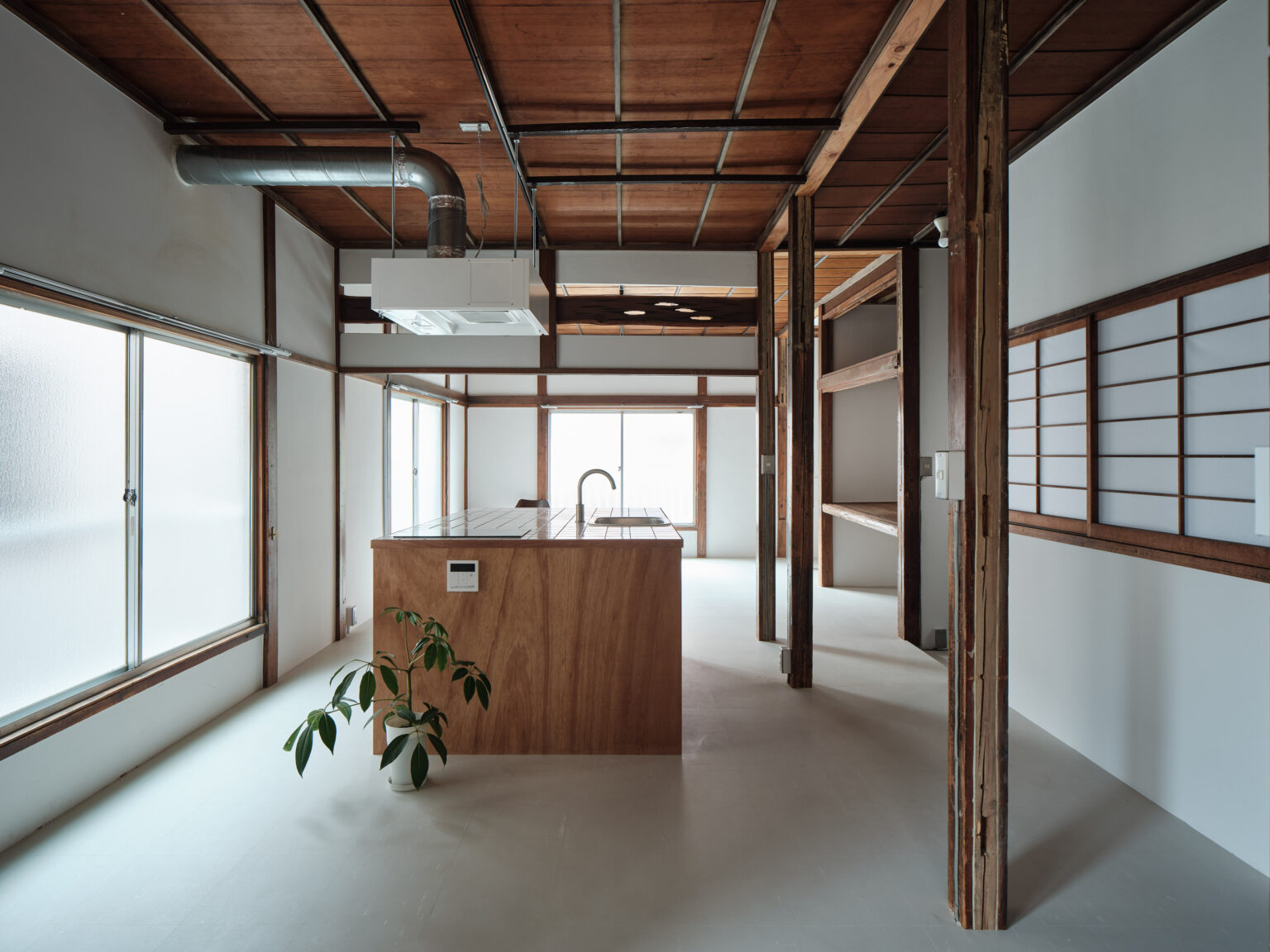 東尾久にある木造2階建の一軒家を改修しました。一階には大きな土間、二階にはキッチンをメインとした居住空間が広がります。
