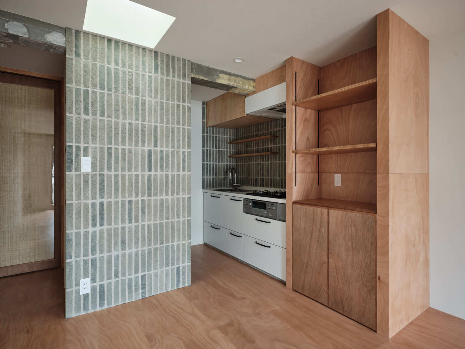 どこから手をつけようかと考えながら歩いていた。その中で、その傷みを一瞬忘れさせる光景があった。出窓に残った障子と、キッチンの真上に開けたトップライト。