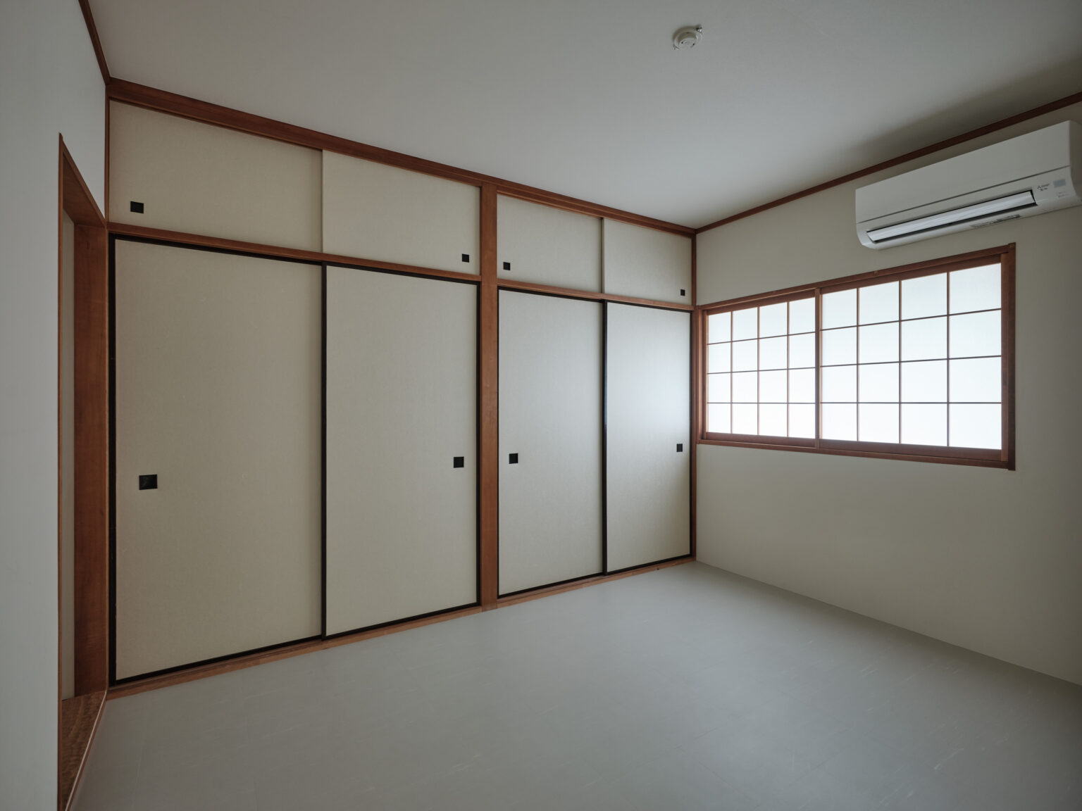 光と人の気配をやわらかく受けとめる装置でもある。部屋どうしが縁側を介して続いているため、行き来には視線の抜けが生まれ、
